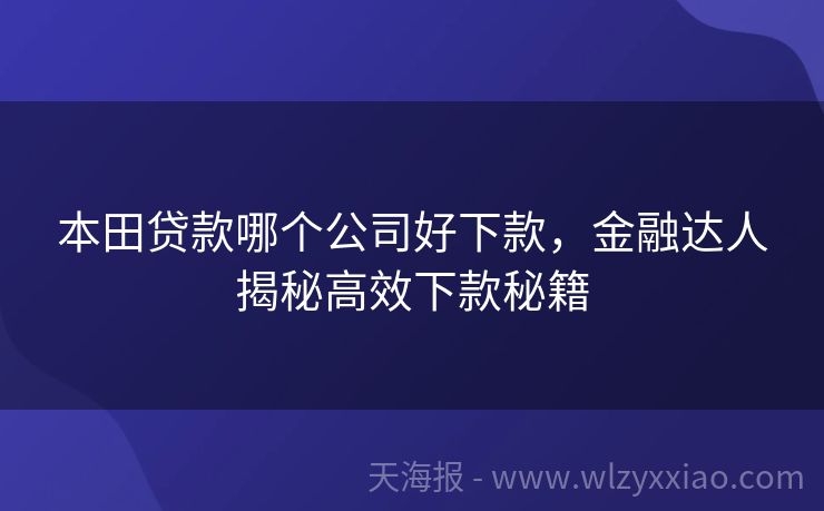 本田贷款哪个公司好下款,金融达人揭秘高效下款秘籍 本田贷款哪个公司好下款?金融小能手带你一探究竟! 嘿,各位想买本田车却资金不够的小伙伴们,是不是正为“本田贷款哪个公司好下款”这个问题愁得抓耳挠腮呢?别担心,今天我这个金融小专家就来给大家好好唠唠,保证让你心里有数,轻松选到适合自己的贷款公司! 先给大家讲个小故事。我的朋友小李,一直梦想着拥有一辆本...
