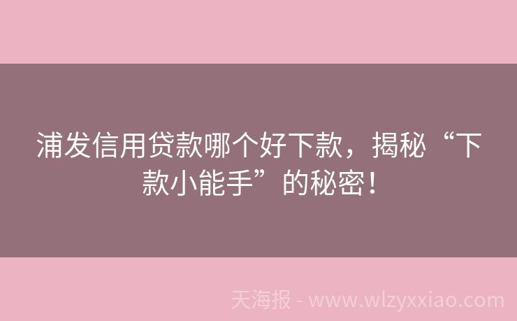 浦发信用贷款哪个好下款,揭秘“下款小能手”的秘密! 浦发信用贷款大揭秘:哪款才是你的“下款小能手”? 在金融江湖里,信用贷款就像那把能打开宝藏大门的钥匙,而浦发银行,作为江湖中的“老字号”,自然有不少让人心动的信用贷款产品。但面对琳琅满目的选择,你是不是也犯了选择困难症?别急,今天咱们就来聊聊浦发信用贷款哪个好下款,还有那些你可能不知道的小秘密哦! ...
