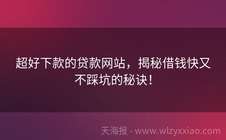 超好下款的贷款网站,揭秘借钱快又不踩坑的秘诀! 超好下款的贷款网站大揭秘:轻松借钱不踩坑! 最近身边总有人念叨:“急需用钱时,找靠谱的贷款网站咋这么难?”别急!今天咱们就化身“贷款小侦探”,扒一扒那些超好下款的贷款网站,顺便聊聊如何避开陷阱,让钱包君安心“喘口气”! 一、超好下款的贷款网站,真的存在吗? 先说结论:存在,但得擦亮眼睛! 这类平台通...
