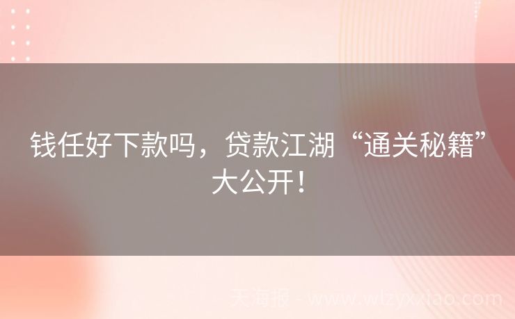 钱任好下款吗,贷款江湖“通关秘籍”大公开! 钱任好下款吗?贷款江湖的“通关秘籍”来啦! 最近后台收到超多小伙伴私信:“钱任好下款吗?”“我征信有点花还能申请吗?”“有没有快速到账的贷款渠道?”作为在贷款江湖摸爬滚打多年的“老江湖”,今天就用一篇文章把“下款”这件事说透!先讲个真实故事:朋友小王急需3万块装修,被“无门槛秒批”广告吸引,结果填了...