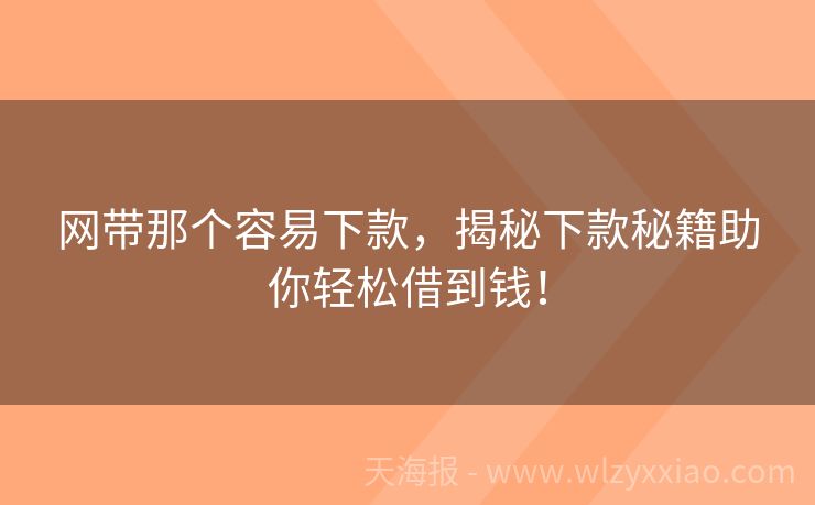 网带那个容易下款,揭秘下款秘籍助你轻松借到钱! 网带哪个容易下款?这份“下款秘籍”请收好! 在当今这个“钱到用时方恨少”的时代,网络贷款就像一位随时待命的“救急小天使”,总能在我们手头紧的时候伸出援手。但面对琳琅满目的网带产品,哪个才更容易下款呢?别急,今天咱们就来聊聊这个话题,保证让你听得明明白白,还能学到不少实用小技巧! 小李的“下款奇遇记”...
