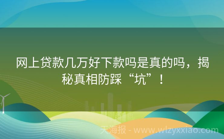 网上贷款几万好下款吗是真的吗,揭秘真相防踩“坑”! 网上贷款几万好下款吗是真的吗?揭秘网络贷款的“真面目” 在这个“手机点一点,资金秒到账”的时代,网上贷款成了不少人解决燃眉之急的“神器”。但每当看到“网上贷款几万好下款”这样的宣传语,你是不是也会心里犯嘀咕:这到底是真靠谱,还是又一场“甜蜜陷阱”?别急,咱们今天就来好好聊聊这个话题,用真实故事和专业...
