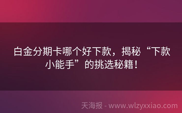白金分期卡哪个好下款,揭秘“下款小能手”的挑选秘籍! 白金分期卡大揭秘:哪张才是你的“下款小能手”? 在这个“剁手”与“分期”并存的时代,白金分期卡就像是一位贴心的财务小秘书,帮你把大额消费轻松拆分成小份,让钱包不再“压力山大”。但面对市场上琳琅满目的白金分期卡,哪张才是真正的“下款小能手”呢?别急,今天咱们就一起探个究竟,还有三个实用问答等你来解锁哦...