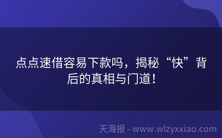 点点速借容易下款吗,揭秘“快”背后的真相与门道! 点点速借容易下款吗?揭秘贷款圈的“闪电侠”真相! “叮咚!”手机屏幕一亮,小李的微信弹出一条消息:“点点速借,3分钟申请,10分钟到账!”他盯着这条广告看了半天,手指在屏幕前犹豫——这年头,贷款广告满天飞,可真正能“秒下款”的靠谱吗?别急,今天咱们就化身“贷款侦探”,扒一扒点点速借的底细,顺便聊聊那...
