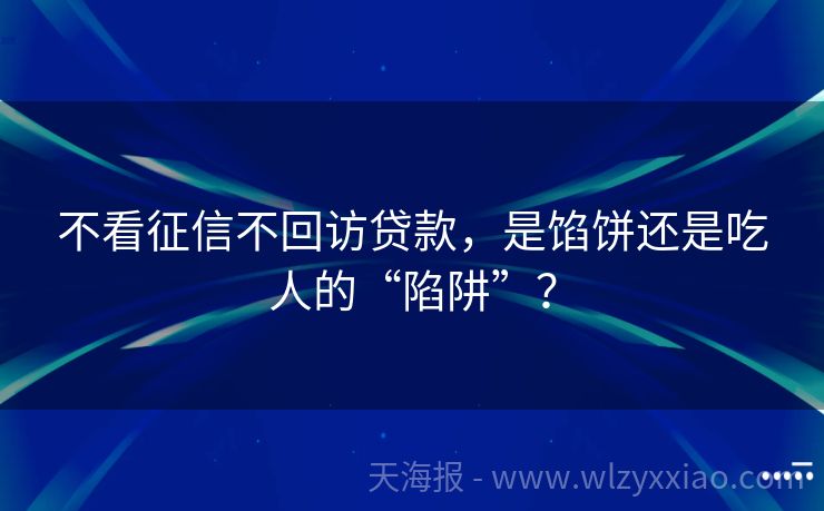 不看征信不回访贷款,是馅饼还是吃人的“陷阱”? 不看征信不回访贷款:是馅饼还是陷阱? 在贷款江湖里,总有一些“神秘传说”飘荡——比如“不看征信不回访贷款”,听起来就像武侠小说里的绝世秘籍,让人忍不住想一探究竟。但作为金融界的“老中医”,我得先给你把把脉:这类贷款,到底是救急的良药,还是暗藏玄机的毒药?别急,咱们慢慢聊,先讲个真实小故事暖暖场。 小...