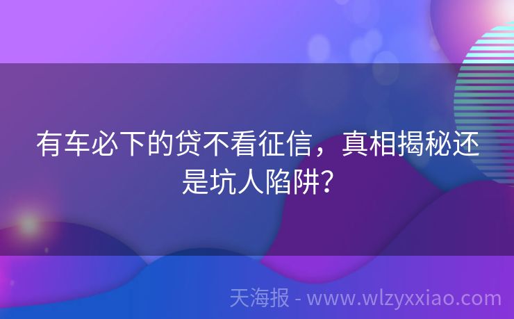 有车必下的贷不看征信,真相揭秘还是坑人陷阱? 有车必下的贷不看征信?真相大揭秘! 最近身边好多朋友都在问:“听说有车就能下款,还不看征信,这是真的吗?”每次听到这种问题,我都忍不住想笑——这年头,连贷款都开始“以车取人”啦?不过别急,作为在金融圈摸爬滚打多年的“老司机”,今天就带大家扒一扒这类“有车必下”的贷款到底靠不靠谱,顺便教你们几招避坑指...