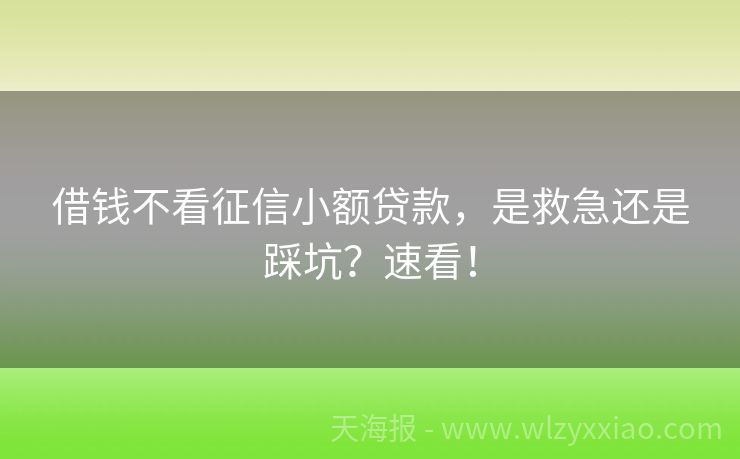 借钱不看征信小额贷款,是救急还是踩坑?速看! 借钱不看征信小额贷款:是馅饼还是陷阱? 在快节奏的现代生活里,谁还没个手头紧的时候?小李最近就遇到了这样的难题,他心仪的限量版球鞋突然打折,可钱包却瘪瘪的。正当他对着手机屏幕唉声叹气时,一则“借钱不看征信小额贷款,轻松解决燃眉之急”的广告弹了出来,小李的眼睛瞬间亮了——这不就是他梦寐以求的“及时雨”...