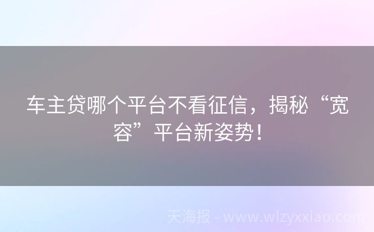 车主贷哪个平台不看征信,揭秘“宽容”平台新姿势! 车主贷江湖大揭秘:哪些平台对征信“手下留情”? 在汽车成为家庭标配的今天,车主贷成了不少人解决资金周转的“秘密武器”。但一提到征信,很多朋友就犯了难:“我的征信有点小瑕疵,还能申请车主贷吗?”别急,今天咱们就来聊聊车主贷江湖里那些对征信相对“宽容”的平台,再穿插几个真实小故事,让你轻松get贷款新姿...