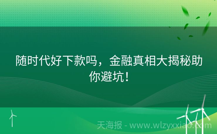 随时代好下款吗,金融真相大揭秘助你避坑! 随时代好下款吗?金融专家带你扒开真相! 最近后台收到不少粉丝留言:"随时代贷款到底好不好下款?是不是像传说中的'秒批神器'?"作为混迹金融圈多年的老司机,今天就带大家扒开"随时代"贷款的神秘面纱,顺便分享几个真实案例,让你少走弯路! 随时代贷款是什么?它真的能"随叫随到"吗? 先给大家科普个小知识:...
