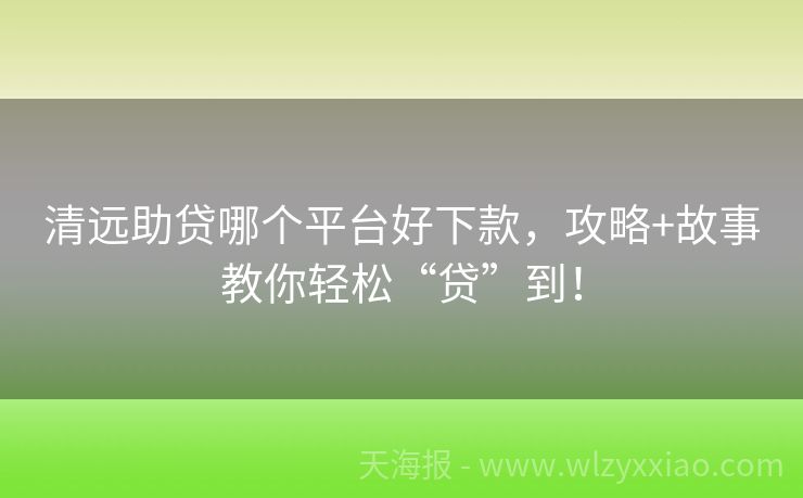 清远助贷哪个平台好下款,攻略+故事教你轻松“贷”到! 清远助贷哪个平台好下款?这份攻略让你轻松“贷”到钱! 在清远这座充满烟火气的城市,生活里总有些时候需要点“资金小助力”——比如想开家奶茶店却差点启动资金,或者家里装修急需添置新家具。这时候,助贷平台就像及时雨,但面对五花八门的选择,到底哪个平台好下款呢?别急,今天咱们就唠唠这个话题,还穿插点小故事,...