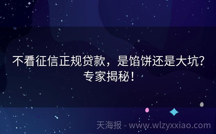 不看征信正规贷款,是馅饼还是大坑?专家揭秘! 不看征信正规贷款:是馅饼还是陷阱?金融专家带你一探究竟! 在这个“信用即财富”的时代,征信记录就像我们的经济身份证,影响着贷款、租房甚至求职的方方面面。但总有些小伙伴因为各种原因,征信上留下了那么一丢丢“小瑕疵”,这时候,“不看征信正规贷款”就像夜空中最亮的星,让人忍不住想靠近。不过,这到底是真福利...