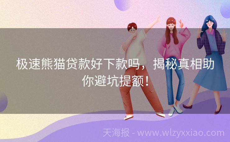极速熊猫贷款好下款吗,揭秘真相助你避坑提额! 极速熊猫贷款好下款吗?揭秘那些“秒到账”的真相! 在贷款江湖里,“极速熊猫贷款”这个名字最近火得不行,不少小伙伴都在问:“这熊猫贷款,是不是真的能像传说中那样,秒批秒下款呀?”嘿,别急,咱们今天就来聊聊这个话题,顺便分享几个小故事,让贷款那些事儿变得生动有趣! 小李的“熊猫奇遇记” 小李是个急性子,...