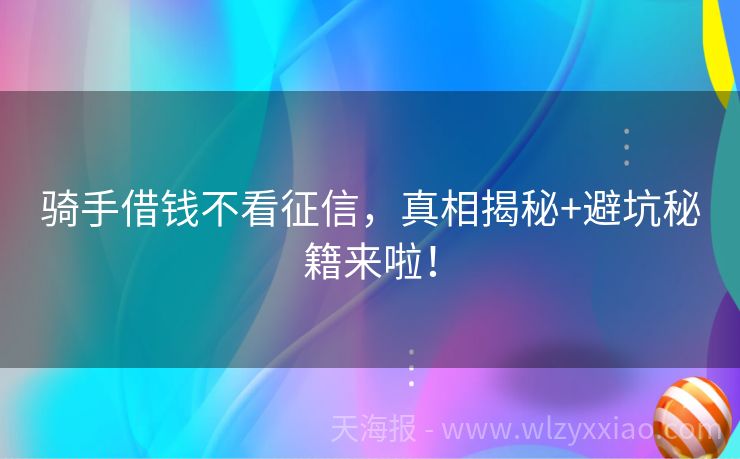 骑手借钱不看征信,真相揭秘+避坑秘籍来啦! 骑手借钱不看征信?真相与避坑指南来啦! 最近总听到骑手兄弟们念叨:“跑单累成狗,钱包却瘪瘪,想借点钱应急,可征信有点花,是不是就没机会了?”别急!今天咱们就来唠唠“骑手借钱不看征信”这事儿,顺便分享几个真实小故事,让你轻松避开贷款路上的大坑! 老王的“惊喜”与“惊吓” 老王是个资深骑手,每天风里来雨...