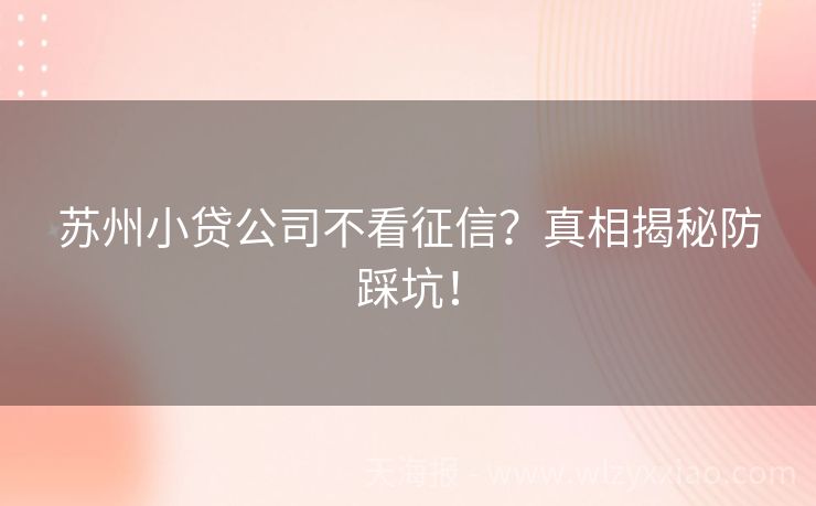 苏州小贷公司不看征信?真相揭秘防踩坑! 苏州小贷公司“不看征信”?真相大揭秘! 在苏州这座温柔水乡,除了园林、评弹和美食,还有一个话题悄悄在朋友间流传——“听说苏州有些小贷公司不看征信就能下款?”哎呀,这听起来像是天上掉馅饼的好事,但真相到底如何呢?今天,咱们就化身金融侦探,一起揭开这层神秘面纱,顺便聊聊那些关于贷款的小秘密! 小故事时间...