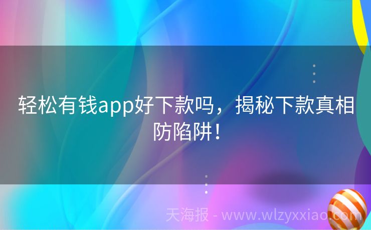轻松有钱app好下款吗,揭秘下款真相防陷阱! 轻松有钱app好下款吗?揭秘网络贷款平台的“真面目”! 在这个“手机点一点,钱就能到账”的时代,网络贷款平台如雨后春笋般冒了出来,其中“轻松有钱app”更是凭借“快速下款”的宣传语吸引了不少眼球。但问题来了,轻松有钱app真的那么好下款吗?别急,咱们今天就来好好唠唠这个话题,顺便分享几个真实小故事,...