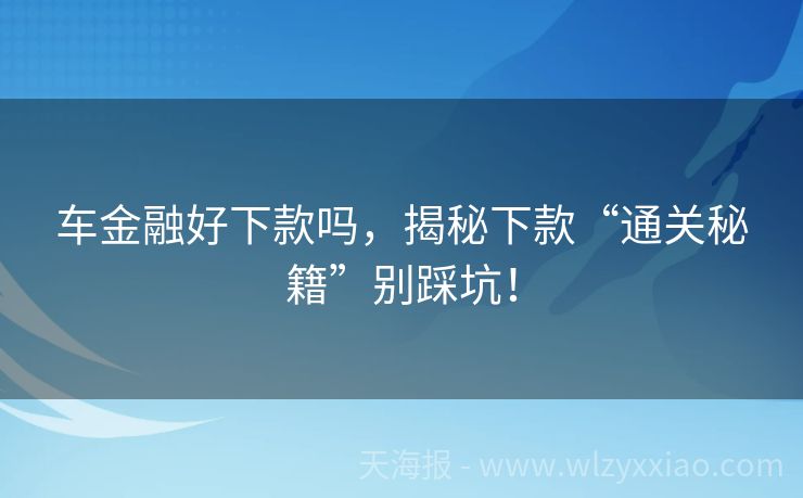 车金融好下款吗,揭秘下款“通关秘籍”别踩坑! 车金融好下款吗?揭秘汽车抵押贷款的“通关秘籍” “叮咚!”手机弹出一条消息:“您的车贷申请已通过!”小王盯着屏幕愣了三秒,突然从沙发上蹦起来——这辆二手大众终于不用再吃灰了!他上周刚把车抵押给金融机构,本以为要等半个月,没想到三天就放款了。这年头,车金融到底好不好下款?今天咱们就唠唠这个“有车就能贷...