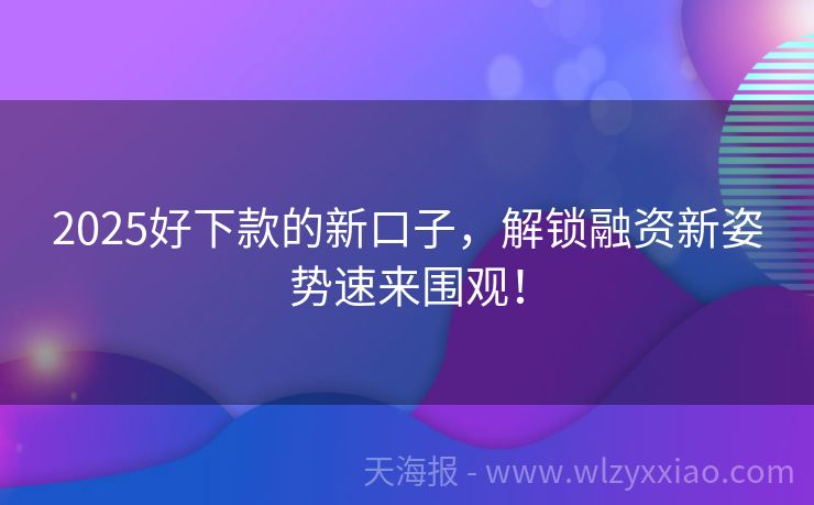 2025好下款的新口子,解锁融资新姿势速来围观! 2025好下款的新口子:解锁资金周转新姿势! 2025年的金融江湖又双叒叕变天啦!最近总有朋友问我:“现在到底哪些贷款渠道靠谱又好下款?”别急别急,作为混迹金融圈多年的“贷款小灵通”,今天就带大家扒一扒2025年那些“友好型”融资新选择,顺便穿插几个真实小故事,让你轻松get贷款新姿势~ 一、银行系...