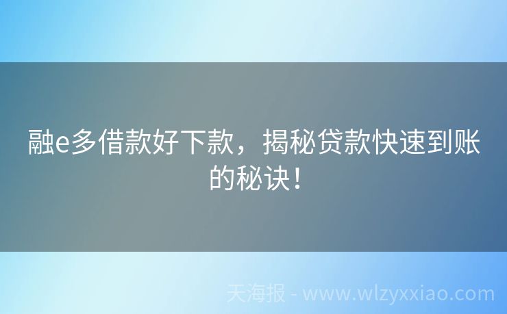 融e多借款好下款,揭秘贷款快速到账的秘诀! 融e多借款好下款?一文带你揭秘贷款那些事儿! 在这个“钱到用时方恨少”的时代,谁还没个急需用钱的时候呢?别急,今天咱们就来聊聊那个传说中的“融e多借款”——听说它好下款,是真的吗?别急,咱们慢慢唠,顺便分享几个贷款小故事,让你的贷款之路不再迷茫! 融e多借款:传说中的“下款小能手”? 说起融e多借款...