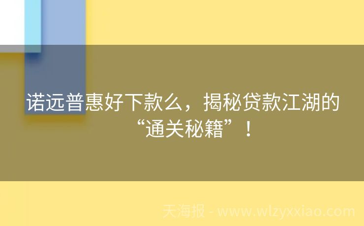 诺远普惠好下款么,揭秘贷款江湖的“通关秘籍”! 诺远普惠好下款么?贷款江湖的“通关秘籍”来啦! 最近总有人问我:“诺远普惠好下款么?”这个问题就像问“奶茶甜不甜”——得看配方!作为混迹金融圈多年的“贷款小灵通”,今天我就用“人话”给大家扒一扒诺远普惠的下款逻辑,顺便分享几个真实案例,保证你看完能少走80%的弯路! 诺远普惠的“下款密码”:资质决定...
