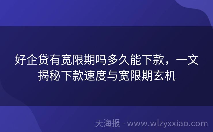 好企贷有宽限期吗多久能下款,一文揭秘下款速度与宽限期玄机 好企贷有宽限期吗?多久能下款?一篇文章全搞定! 在创业江湖里摸爬滚打的小老板们,谁还没为资金周转发过愁?最近后台收到好多私信:“好企贷到底有没有宽限期?”“申请后多久能到账?”今天咱们就化身“贷款小灵通”,用真实案例+硬核知识,把好企贷的“下款玄学”拆解得明明白白! 好企贷的“宽限期”到底是个啥? ...