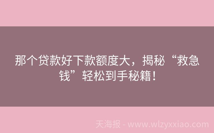 那个贷款好下款额度大,揭秘“救急钱”轻松到手秘籍! 那个贷款好下款额度大?金融小侦探带你揭秘! 在急需资金周转时,大家最关心的莫过于“哪个贷款好下款额度大”啦!毕竟,谁不想在关键时刻轻松拿到一笔“救急钱”,还能额度满满呢?别急,作为金融界的“福尔摩斯”,我今天就来给大家扒一扒那些既容易下款,额度又给力的贷款产品,还附赠几个真实小故事,让你的阅读之旅更...