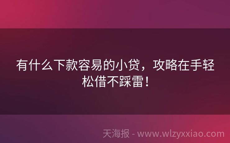 有什么下款容易的小贷,攻略在手轻松借不踩雷! 有什么下款容易的小贷?这份攻略请收好! 最近朋友小李急得直挠头——他创业需要一笔启动资金,跑了好几家银行都被拒,连网贷平台也卡得严严实实。直到他遇到一位做金融的朋友,才明白“下款容易”的小贷不是碰运气,而是有门道的!今天咱们就唠唠这个话题,帮你避开坑,找到真正靠谱的“救急神器”。 小贷下款容易的“秘...