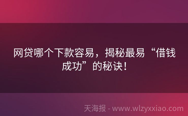 网贷哪个下款容易,揭秘最易“借钱成功”的秘诀! 网贷江湖大揭秘:哪个“门派”下款最容易? 在快节奏的现代生活里,谁还没个手头紧的时候?面对琳琅满目的网贷平台,是不是常常挑花了眼,心里直犯嘀咕:“到底哪个网贷下款容易呢?”别急,今天咱们就来一场网贷江湖的深度探秘,帮你找到那个最容易“借钱成功”的“门派”! 小李的“网贷奇遇记” 先讲个小故事,我的朋...