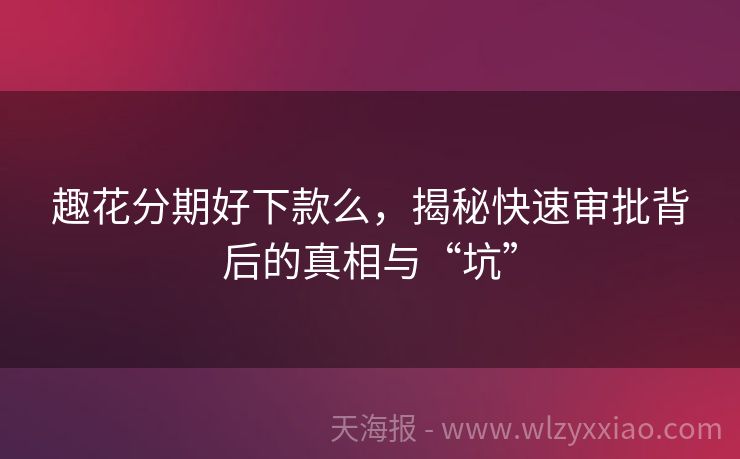 趣花分期好下款么,揭秘快速审批背后的真相与“坑” 趣花分期好下款么?揭秘贷款江湖里的“快车道”传说 在贷款江湖里,总有些“传说”让人心动不已,比如“趣花分期好下款么”这个问题,就像江湖中的秘籍一样,引得无数借款人竞相探寻。今天,咱们就化身金融侦探,一起揭开趣花分期的神秘面纱,看看它是不是真的如传说中那般“好下款”。 小李的“趣花”奇遇记 小李是个刚...