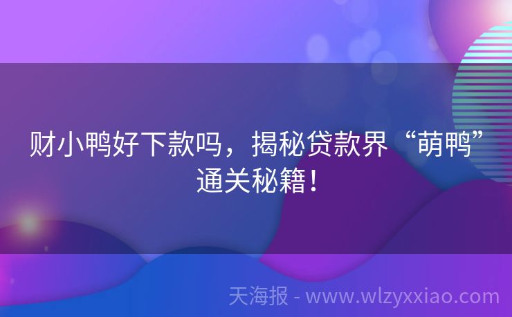 财小鸭好下款吗,揭秘贷款界“萌鸭”通关秘籍! 财小鸭好下款吗?揭秘小额贷款界的“萌系选手” 最近后台收到超多小伙伴私信:“财小鸭好下款吗?”“申请被拒是不是凉了?”“有没有快速通过的小技巧?”作为混迹金融圈多年的“老鸭头”(不是),今天就带大家扒一扒这个被年轻人称为“贷款界小太阳”的财小鸭,顺便聊聊那些让人又爱又恨的贷款冷知识~ 财小鸭是谁?它...