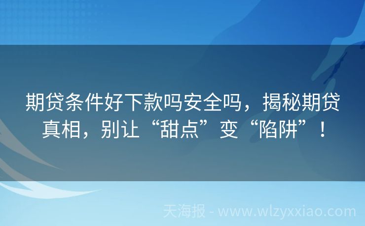 期贷条件好下款吗安全吗,揭秘期贷真相,别让“甜点”变“陷阱”! 期贷条件好下款吗安全吗?一篇文章给你讲明白! 最近身边总有朋友问:“期贷条件是不是超宽松?下款快不快?安全系数高吗?”今天咱们就化身“期贷小侦探”,用超接地气的方式扒一扒期贷的真相!先讲个真实同事小王急需资金周转,看到某平台宣传“期贷条件超简单,3分钟下款”,结果填完资料才发现,利息高得吓人,最后差...