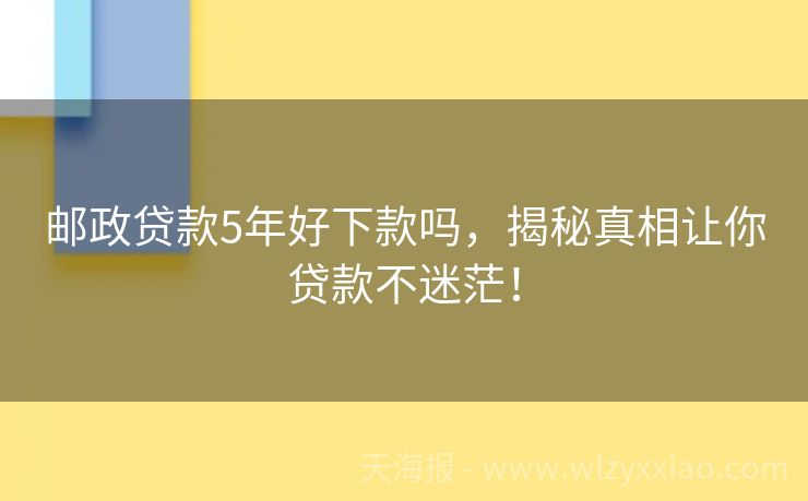 邮政贷款5年好下款吗,揭秘真相让你贷款不迷茫! 邮政贷款5年好下款吗?揭秘邮政贷款那些事儿 在贷款江湖里,邮政贷款就像一位低调却实力不凡的“大侠”,总能在你需要资金支援时,默默伸出援手。但江湖传言纷纷,邮政贷款5年期限的好下款吗?别急,咱们这就来一场深度揭秘,让你的贷款之路畅通无阻! 张三的邮政贷款奇遇记 话说张三,一个普通的上班族,最近因为家里...