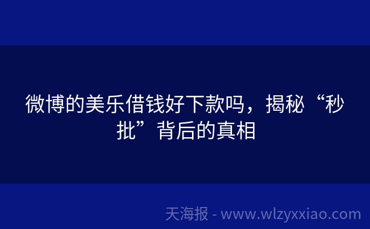 微博的美乐借钱好下款吗,揭秘“秒批”背后的真相 微博的美乐借钱好下款吗?揭秘社交平台里的“借钱小秘密” 最近刷微博时,总能看到“美乐借钱”的广告弹窗,配图是穿着西装的小人举着“3分钟到账”的牌子,像极了地铁口吆喝“最后三天清仓”的促销员。不少朋友私信问我:“这微博上的美乐借钱到底靠不靠谱?好下款吗?”今天咱们就化身“贷款侦探”,扒一扒社交平台里的...