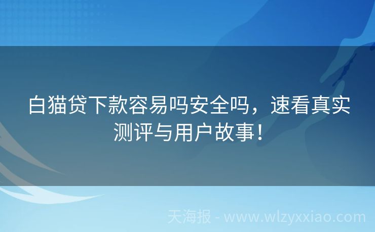 白猫贷下款容易吗安全吗,速看真实测评与用户故事! 白猫贷下款容易吗安全吗?金融小灵通带你一探究竟! 在这个“钱到用时方恨少”的时代,贷款成了不少小伙伴解决燃眉之急的“救星”。而白猫贷,作为众多贷款产品中的一员,最近可是火得不行!白猫贷下款真的容易吗?用起来又安不安全呢?别急,金融小灵通这就来给你细细道来,还附赠几个原创小故事,让你的阅读之旅更加有趣...