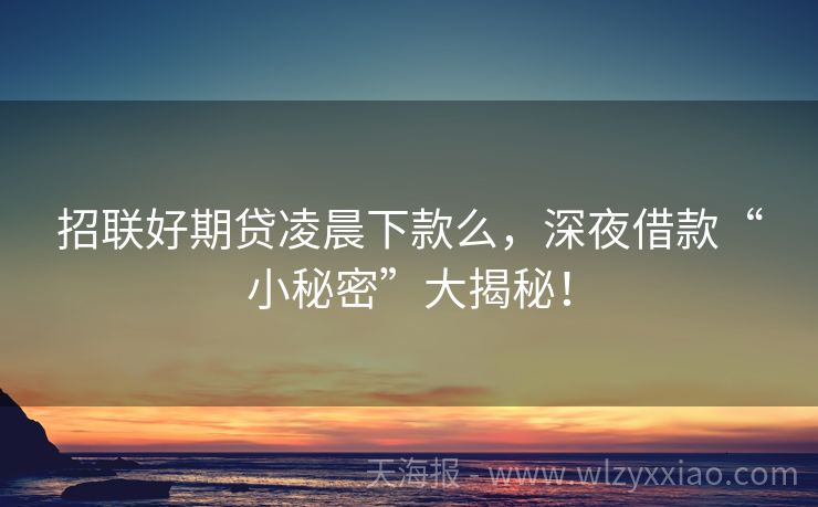 招联好期贷凌晨下款么,深夜借款“小秘密”大揭秘! 招联好期贷凌晨下款么?揭秘深夜借款的“小秘密” 夜深人静,月光洒在窗台,你躺在床上刷手机,突然看到一条“急需用钱?招联好期贷秒到账”的广告,心里一动:“要是现在申请,凌晨能下款吗?”别急,今天咱们就来聊聊这个“深夜借款”的热门话题,顺便分享几个真实小故事,让你轻松get贷款知识! 招联好期贷凌晨下款...