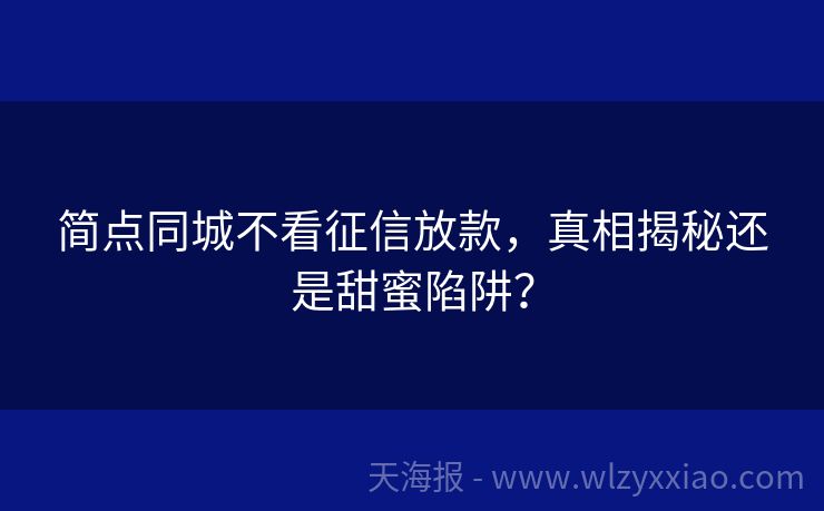 简点同城不看征信放款,真相揭秘还是甜蜜陷阱? 简点同城不看征信放款?真相大揭秘! 最近总听朋友念叨“简点同城不看征信放款”,仿佛找到了贷款界的“世外桃源”。可这世上真有“不看征信就放款”的好事吗?今天咱们就来唠唠这个话题,顺便分享几个小故事,让你轻松get贷款知识! 一、简点同城不看征信放款,靠谱吗? 先讲个故事:小王最近手头紧,在简点同城看到...