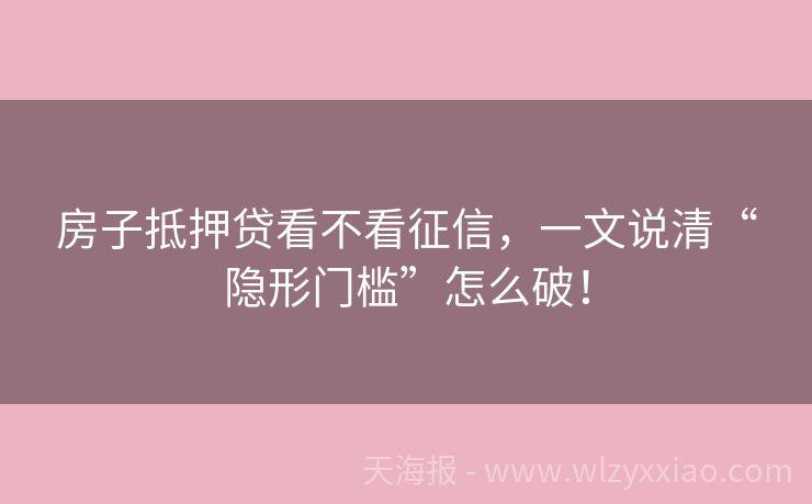 房子抵押贷看不看征信,一文说清“隐形门槛”怎么破! 房子抵押贷看不看征信?一篇文章给你讲透! 最近朋友小李急得团团转,他创业需要一笔资金周转,想着把自家房子抵押给银行申请贷款,结果听说要查征信,瞬间慌了神——原来他之前因为粗心大意,信用卡有过几次逾期记录。这让他忍不住嘀咕:“房子都抵押了,银行还揪着征信不放吗?”像小李这样对“房子抵押贷看不看征信”有...