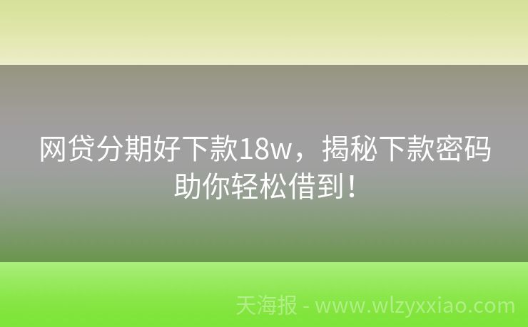 网贷分期好下款18w,揭秘下款密码助你轻松借到! 网贷分期好下款18w?这波操作指南请收好! 最近收到好多小伙伴私信:“手头紧想申请18万网贷分期,怎么才能顺利下款呀?”别急!作为在金融圈摸爬滚打多年的“贷款小灵通”,今天就带大家拆解网贷分期的“下款密码”,顺便讲个真实小故事助助兴~ 一、网贷分期18万,到底怎么选平台? 先讲个真实案例:朋友小王急...