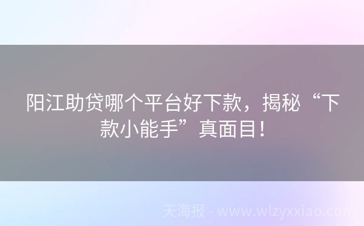 阳江助贷哪个平台好下款,揭秘“下款小能手”真面目! 阳江助贷大揭秘:哪个平台才是你的“下款小能手”? 在阳江这座美丽的海滨城市,生活节奏虽不如大城市那般快,但偶尔也会遇到资金周转的小难题。这时候,助贷平台就像及时雨,能帮你解决燃眉之急。不过,面对市面上琳琅满目的助贷平台,你是不是也挑花了眼,心里直犯嘀咕:“阳江助贷哪个平台好下款呢?”别急,今天咱们就...
