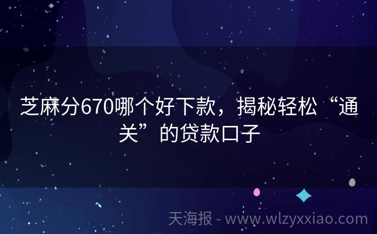 芝麻分670哪个好下款,揭秘轻松“通关”的贷款口子 芝麻分670的“贷款通关秘籍”:好下款口子大揭秘! 朋友们!是不是常常听到“芝麻分”这个词?它就像咱们在金融江湖里的“信用身份证”,分值越高,贷款之路越顺畅。今天咱们就唠唠,当你的芝麻分稳稳站在670这个台阶上,哪些贷款口子更容易“拿下”,让你轻松解决资金难题! 先给大家讲个小故事。小李是个普通上班...