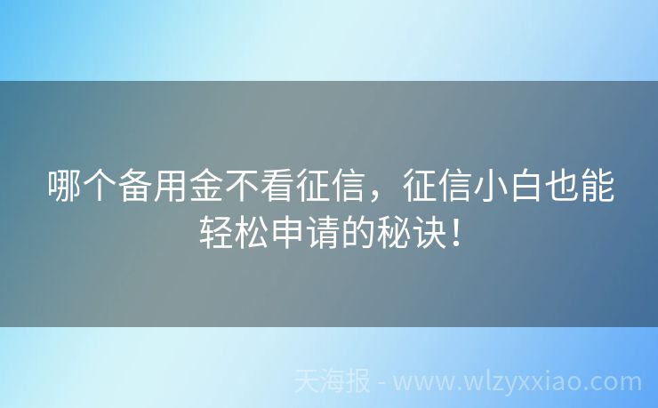 哪个备用金不看征信,征信小白也能轻松申请的秘诀! 哪个备用金不看征信?揭秘“征信友好型”备用金申请指南 “叮咚——”手机屏幕亮起,小李盯着银行发来的短信,眉头皱成了麻花:“您的贷款申请因征信记录不足被拒。”这已经是他这个月第三次被拒了。作为刚毕业的大学生,小李既没信用卡也没房贷记录,每次想申请备用金救急,总被“征信”这道坎绊住脚。像小李这样的“征信...