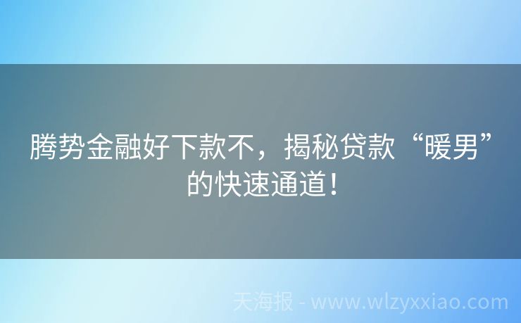 腾势金融好下款不,揭秘贷款“暖男”的快速通道! 腾势金融好下款不?揭秘贷款界的“温柔小哥” 在这个“钱到用时方恨少”的时代,贷款成了不少人应急的“小棉袄”。但面对琳琅满目的贷款平台,你是不是也挑花了眼,心里直嘀咕:“腾势金融到底好不好下款呢?”别急,今天咱们就来聊聊这位贷款界的“温柔小哥”——腾势金融,看看它到底能不能成为你资金周转的得力助手! ...