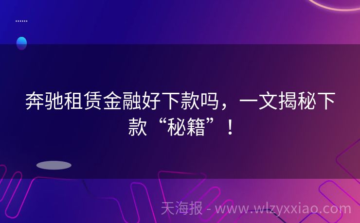 奔驰租赁金融好下款吗,一文揭秘下款“秘籍”! 奔驰租赁金融好下款吗?一篇文章让你秒懂! 最近身边总有人问:“我想开奔驰,但手头钱不够,奔驰租赁金融好下款吗?”嘿,这问题问得妙!毕竟,谁不想开着闪闪发光的奔驰车,在马路上成为最靓的崽呢?不过,别急着心动,咱们先来聊聊奔驰租赁金融的那些事儿,保证让你看完后心里有底,不再纠结! 奔驰租赁金融,究竟是个...