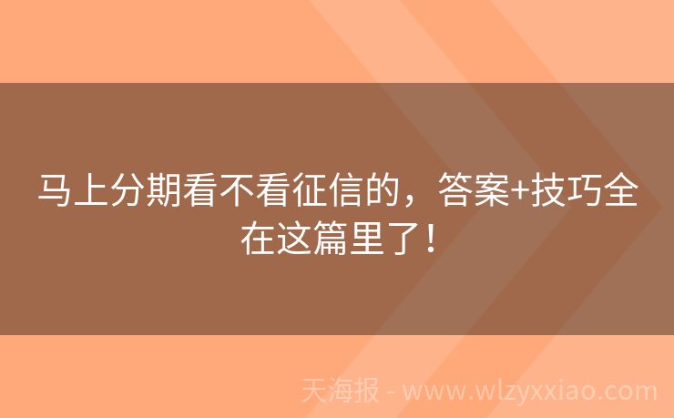 马上分期看不看征信的,答案+技巧全在这篇里了! 马上分期看不看征信的?一篇文章给你讲透! 最近好多小伙伴私信问我:“马上分期看不看征信呀?我征信有点小瑕疵,能不能申请呀?”别急别急,今天咱们就来聊聊这个话题,保证让你听得明明白白,还能学到不少贷款小知识呢! 征信“小插曲”引发的贷款风波 先给大家讲个真实发生的小故事。小李是个上班族,平时花钱有点大...