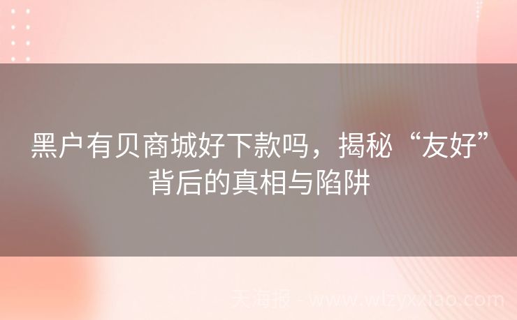黑户有贝商城好下款吗,揭秘“友好”背后的真相与陷阱 黑户有贝商城好下款吗?一篇文章带你揭秘“特殊通道”的真相! 最近总听到朋友小李抱怨:“我征信有点花,成了大家说的‘黑户’,听说有贝商城能下款,这是真的吗?”相信不少朋友都有类似困惑——当传统贷款渠道因信用问题对我们关上大门时,那些号称“黑户友好”的平台,到底是救命稻草还是温柔陷阱?今天咱们就以“有贝...