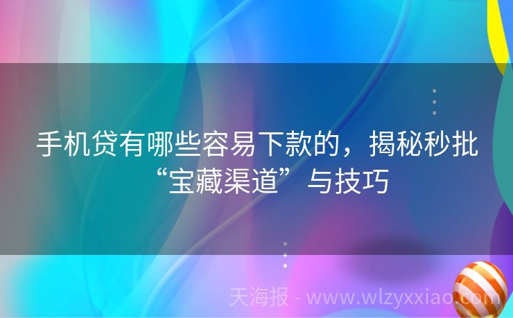 手机贷有哪些容易下款的,揭秘秒批“宝藏渠道”与技巧 手机贷江湖大揭秘:这些“容易下款”的宝藏渠道你知道吗? 最近朋友小王跟我吐槽:“明明信用良好,申请手机贷却被拒了三次,难道是我手机屏保不够可爱?”其实啊,手机贷下款就像谈恋爱——既要门当户对,也要讲究技巧。今天咱们就化身“贷款红娘”,扒一扒那些容易下款的手机贷渠道,顺便传授几个“脱单”秘籍! 一、手...