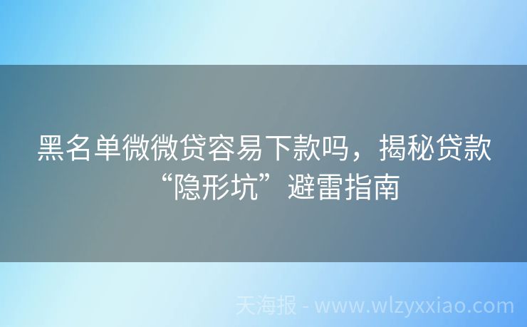 黑名单微微贷容易下款吗,揭秘贷款“隐形坑”避雷指南 黑名单微微贷容易下款吗?揭秘贷款圈的"隐形门槛" "叮咚——"手机屏幕亮起,刚被三家银行拒贷的小王盯着"微微贷"的广告弹窗,手指悬在"立即申请"按钮上犹豫不决。这个号称"黑名单也能下款"的口子,究竟是救急良药还是新型陷阱?作为在贷款圈摸爬滚打五年的"人形避坑指南",今天就带大家扒开这类产品的真面目!...