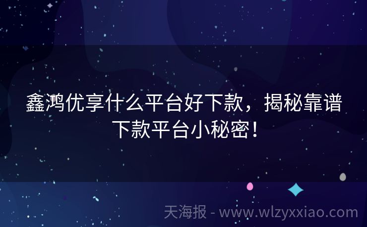 鑫鸿优享什么平台好下款,揭秘靠谱下款平台小秘密! 鑫鸿优享?揭秘那些真正好下款的“靠谱平台”小秘密! 在这个“钱到用时方恨少”的时代,谁还没遇到过几个急需用钱的小尴尬呢?比如突然想给心爱的TA一个惊喜,却发现钱包比脸还干净;或者家里的小电器突然罢工,急需换个新的。这时候,如果能找到一个好下款的[贷款平台],简直就是救星降临!今天,咱们就来聊聊“鑫鸿...