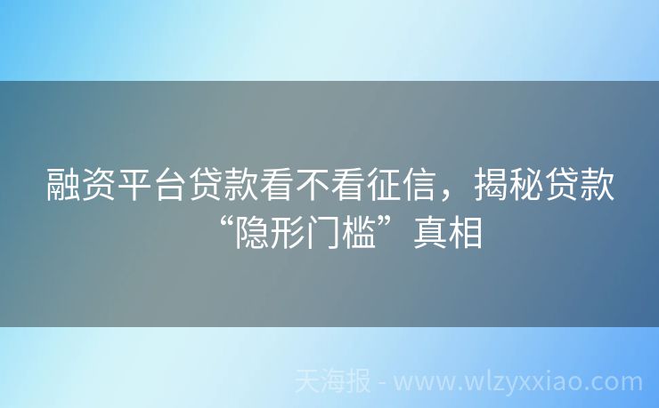 融资平台贷款看不看征信,揭秘贷款“隐形门槛”真相 融资平台贷款看不看征信?一文带你揭秘贷款小秘密! 嘿,小伙伴们!是不是经常听到“征信”这个词,却又对它云里雾里?特别是在申请融资平台贷款时,心里直犯嘀咕:“这融资平台贷款到底看不看征信呀?”别急,今天咱们就来聊聊这个话题,保证让你听得明明白白,还能学到不少贷款小知识呢! 融资平台贷款:征信是道“隐形...