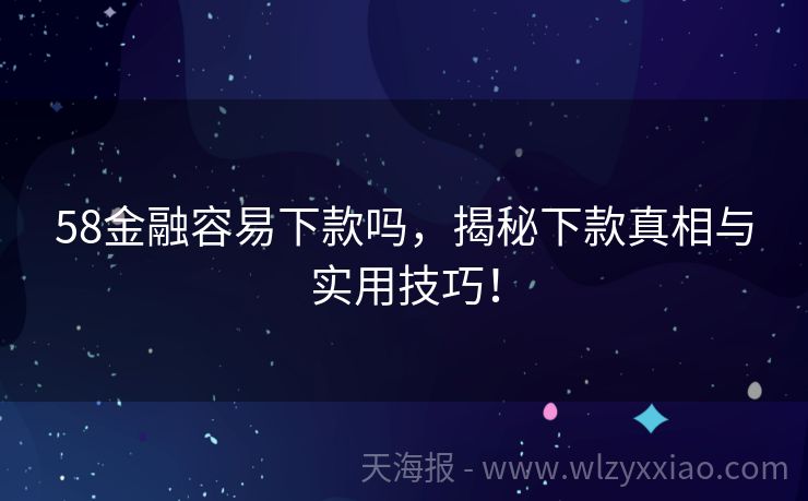 58金融容易下款吗,揭秘下款真相与实用技巧! 58金融容易下款吗?揭秘贷款界的“小甜甜”真相! 在贷款江湖里,总有那么几个名字像“网红”一样,时不时就在你耳边响起,58金融就是其中之一。每当手头紧,钱包比脸还干净的时候,你是不是也偷偷想过:“58金融容易下款吗?”别急,今天咱们就来聊聊这个话题,保证让你听得津津有味,还能学到不少贷款小知识! 小...