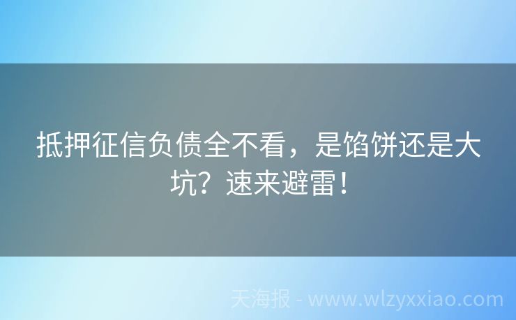 抵押征信负债全不看,是馅饼还是大坑?速来避雷! 抵押征信负债全不看?贷款界的“佛系玩家”真的存在吗? 最近朋友小李愁眉苦脸地找我吐槽:“我征信有点小瑕疵,还有笔车贷没还清,现在想申请贷款咋这么难?”我拍拍他肩膀说:“别急,市面上确实有‘抵押征信负债全不看’的贷款产品,但可别急着冲,先听我唠唠这其中的门道!”这类贷款就像贷款界的“佛系玩家”,看似不...